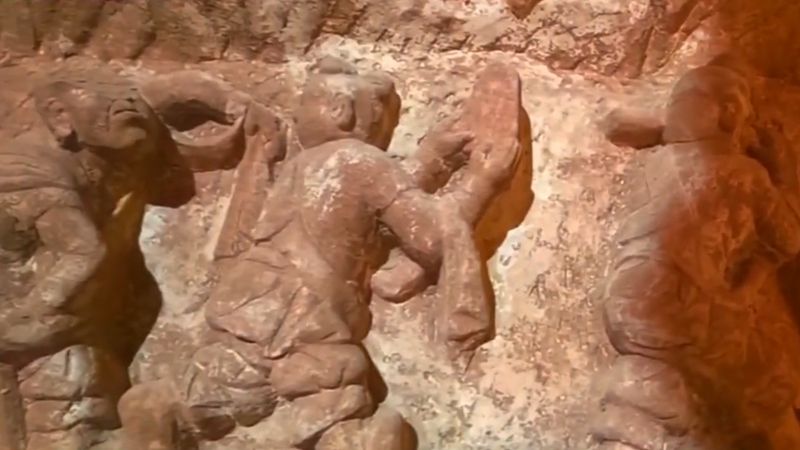 安塞发现一组宋代伎乐石雕造像 展现腰鼓表演场景